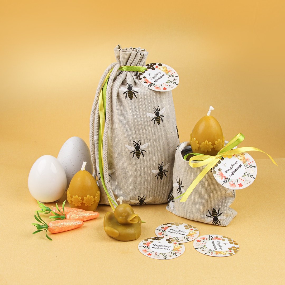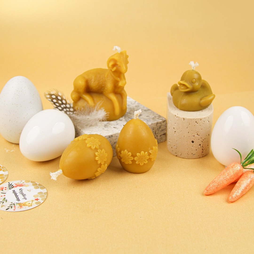 Świeczka z naturalnego wosku pszczelego będzie pięknie się prezentować w wielkanocnym koszyczku