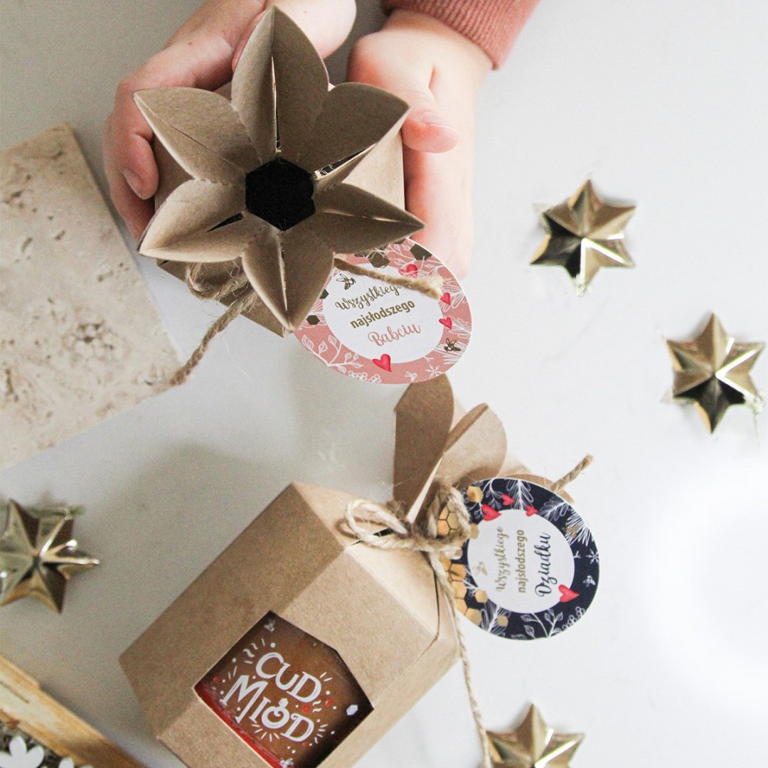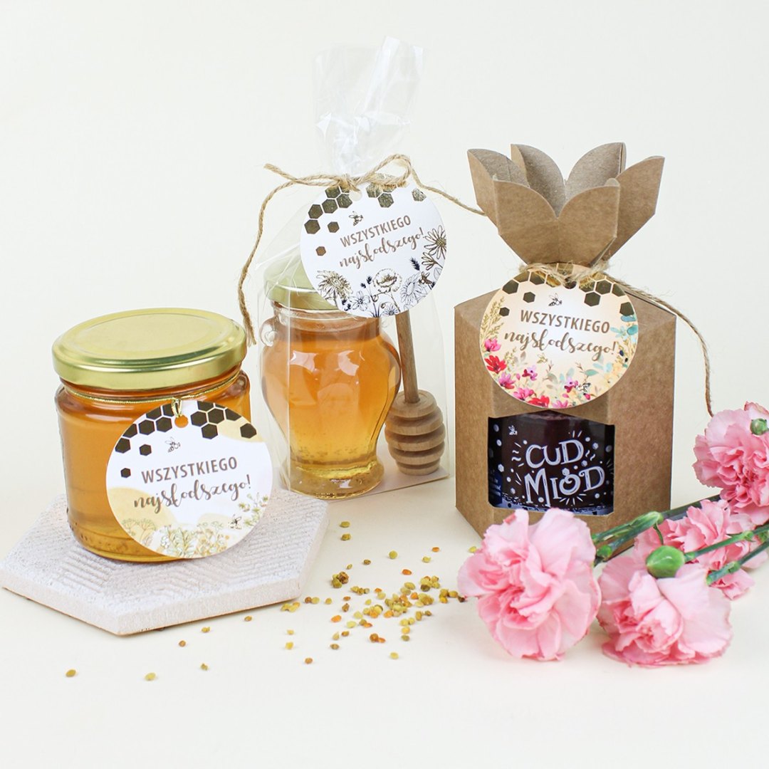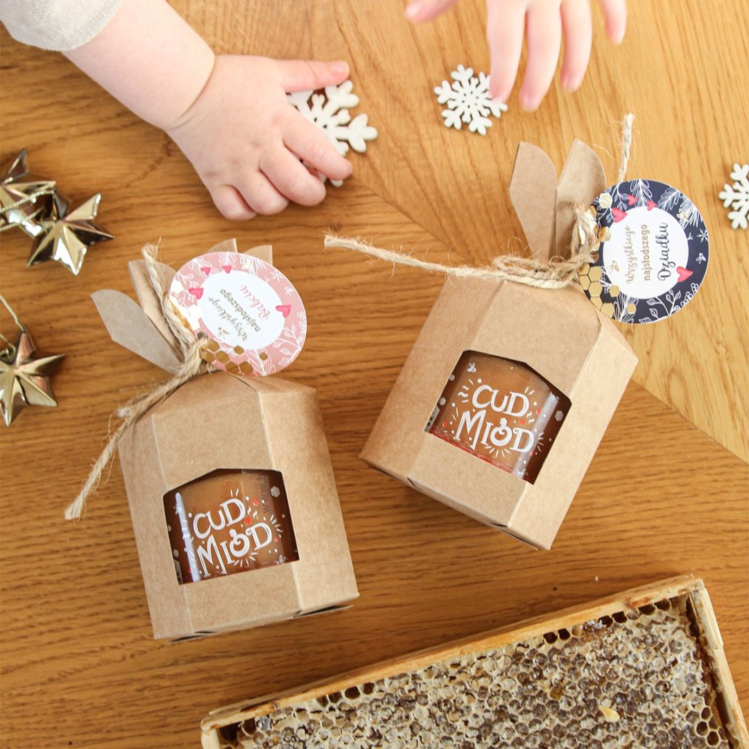Szukasz gotowego pomysłu na prezent? Nic prostszego, wystarczy, że wybierzesz ulubiony smak cud miodu 250 g oraz nasze prezentowe opakowanie wraz z zawieszką (cztery grafiki do wyboru).