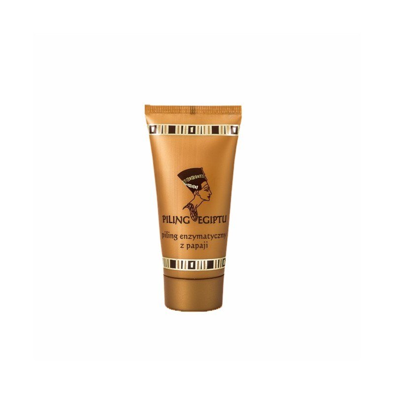 Enzymatyczny Piling Egiptu pozwala utrzymać świeży wygląd twarzy i ciała, nie ingerując w naskórek tak silnie jak pilingi mechaniczne. Czynny enzym z papaji oczyszcza i odblokowuje pory. Ponadto pobudza skórę do samoregeneracji i przygotowuje ją do przyjęcia innych składników preparatu z serii Egipt. Dzięki zawartości mocznika komórki naskórka lepiej wiążą i zatrzymują wodę, natomiast obecność allantoiny gwarantuje rezultat napięcia skóry, działa przeciwzapalnie i łagodząco, stymulując przy tym mikrocerkulację skóry. Piling Egiptu to także skoncentrowana porcja witaminy E - zwanej witaminą młodości, która neutralizuje wpływ wolnych rodników i opóźnia proces starzenia się skóry. Piling został również wzbogacony o masło Shea - naturalny parasol ochronny przed promienowaniem UVB. Dzięki zawartemu w kremie wosku pszczelego oraz oleju z drzewa Annato, Piling Egiptu zyskuje naturalny, pozbawiony barwników syntetycznych kolor oraz zmysłowy zapach.